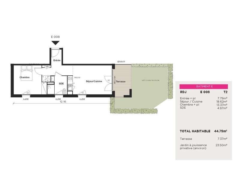 - Un jardin privatif de 23.50m² parfaite pour des moments de détente en extérieur