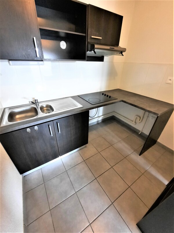 Située à proximité du centre de Launaguet,. Elle vous propose un appartement T2 situé au 1er étage Dès l'entrée, vous bénéficiez d'un placard pratique. Le séjour lumineux dispose également d'un placard et d'une cuisine équipée comprenant un évier, des meubles hauts et bas, une plaque vitrocéramique deux feux, une hotte aspirante et un réfrigérateur table top. La chambre est aménagée avec un parquet élégant et la salle d'eau est entièrement équipée pour votre confort.