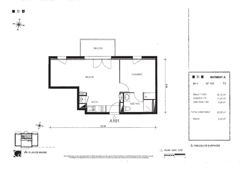 Il est composé d'une entrée avec placard, d'un séjour et une cuisine aménagée s'ouvrant sur un balcon de 5.22m², d'une grande chambre avec placard, d'une salle d'eau aménagée avec WC et une place de parking en sous-sol.