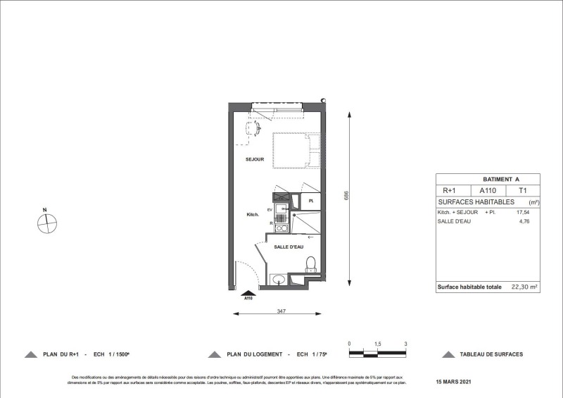 Appartement 1 pièce 22.3m²