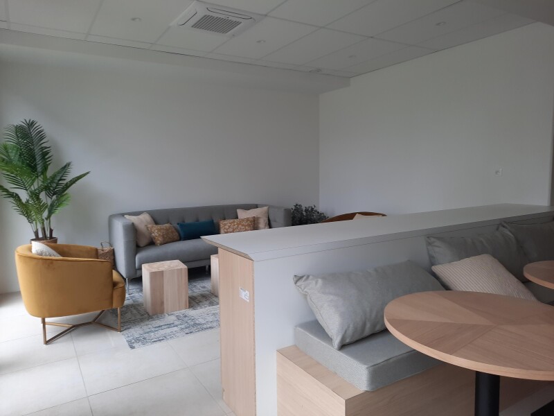 * Une agréable pièce de vie commune vous permettra d'échanger et de partager grâce à ses zones de détentes, son coin télé, sa kitchenette et son espace internet.
