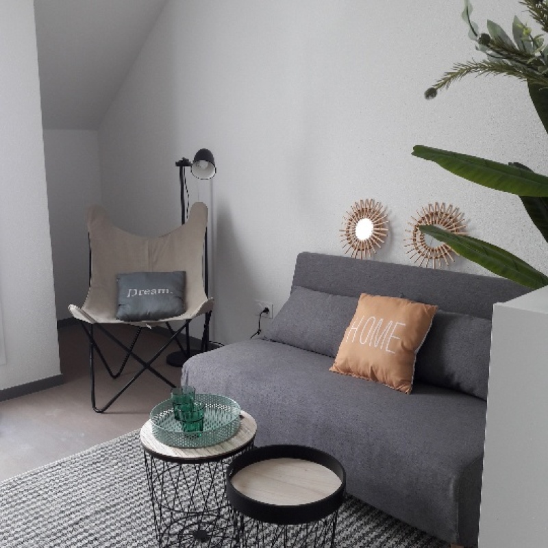 Il est composé, d'une pièce à vivre avec placard, d'un coin cuisine équipé au style contemporain, (évier inox, plaque 2 feux, hotte, meubles hauts et bas, frigo top), d'une salle d'eau aménagée avec WC et emplacement lave-linge.Il bénéficie d'un parking sous-sol.