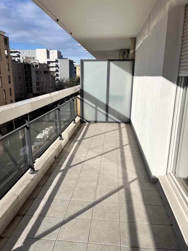 La cuisine équipée (meubles hauts et bas, évier) s'ouvre sur un séjour lumineux donnant accès à un balcon idéal pour vos moments de détente.