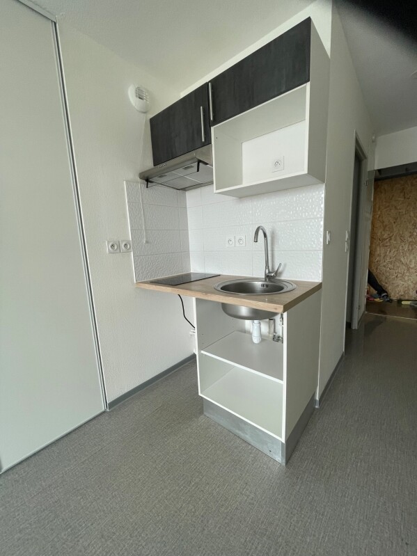 Il est composé d'une entrée, d'une pièce de vie avec cuisine équipée (évier inox, plaque 2 feux, hotte, meubles hauts et bas,frigo table top), d'une salle d'eau aménagée avec WC, d'un balcon de 3.94m².