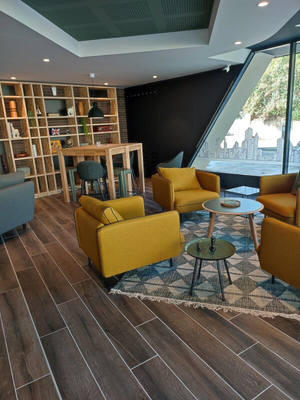 Un espace bien être : babyfoot, terrain de pétanque intérieur, espace lounge, jardin potager collaboratif, bibliothèque.