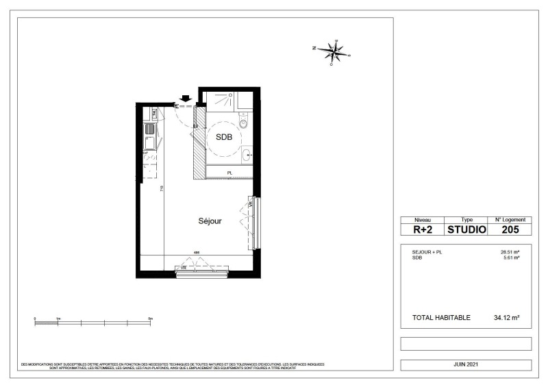Appartement 1 pièce 34.12m²