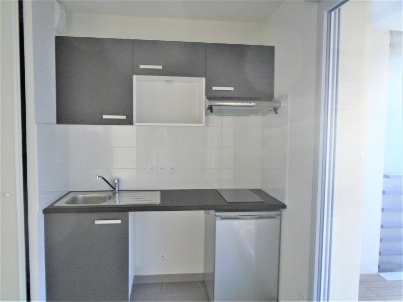 Nous vous proposons ce T2 composé d'un séjour avec cuisine équipée (bloc évier inox, plaque 2 feux, hotte, meubles hauts et bas, frigo top), une chambre avec placard, salle d'eau aménagée avec WC, un balcon de 6.54m², un parking aérien.
