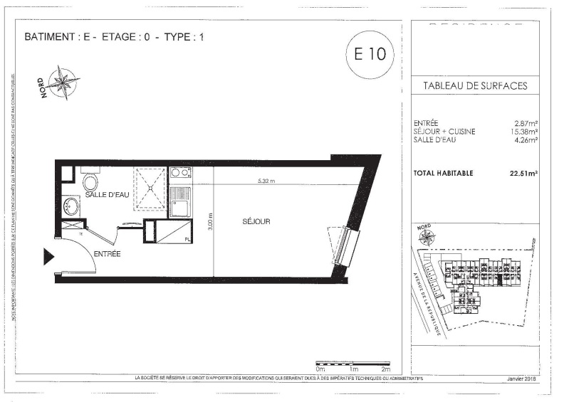 Appartement 1 pièce 22.51m²