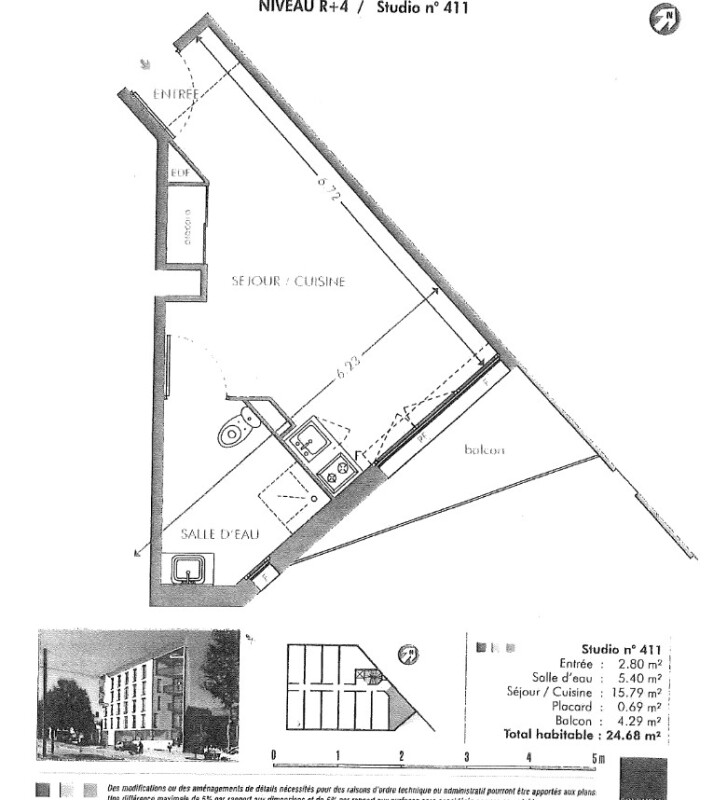 Appartement 1 pièce 24.68m²