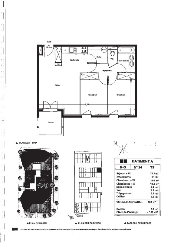 Appartement 3 pièces 55.8m²