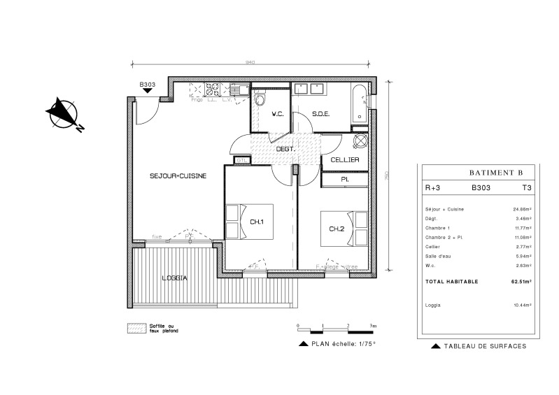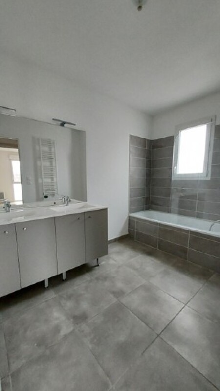 Nous vous proposons cet agréable T3 composé d'un séjour avec cuisine équipée (Meubles hauts et bas - Hotte - Plan de travail - Plaque de cuisson 4 feux - Evier inox), de deux chambres dont une avec placard, d'un cellier, d'une salle de bain aménagée avec une paroi de baignoire, d'un WC séparé, d'une loggia de 10.40m². Il bénéficie de deux places de parking aériens.