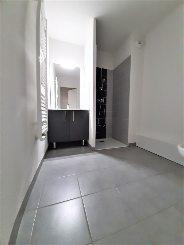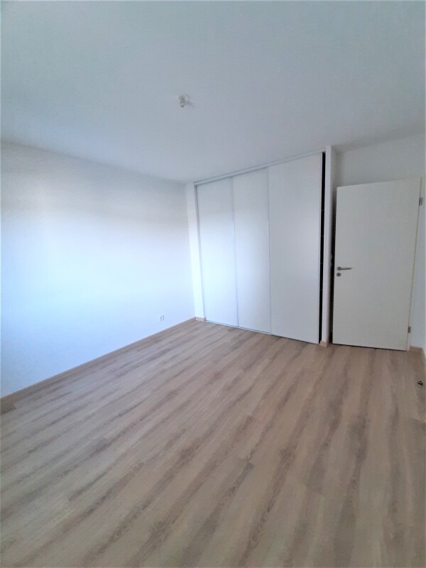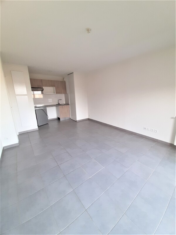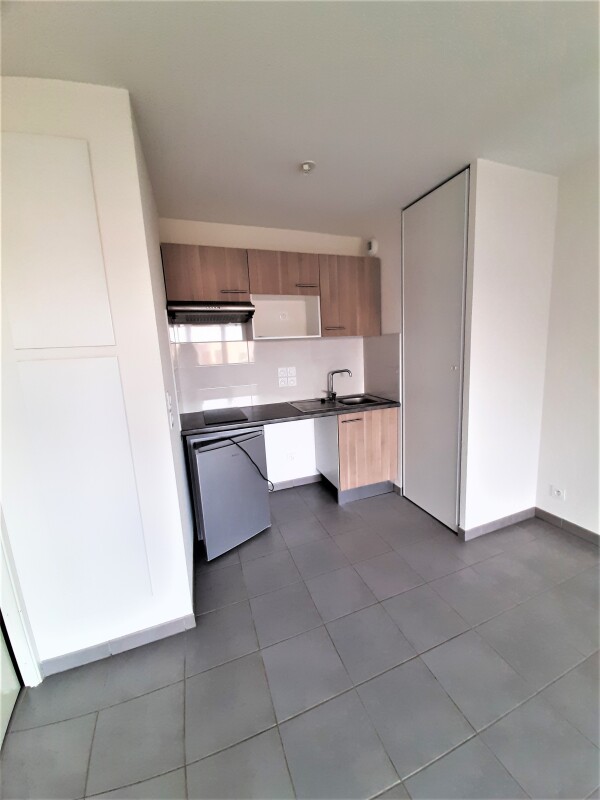 L'appartement est composé d'une entrée avec placard, séjour avec cuisine équipée (évier inox, plaque 2 feux, hotte, meubles hauts et bas, frigo top), une chambre avec placard, salle d'eau aménagée avec WC, un balcon de 7.20 m². Un parking aérien.
