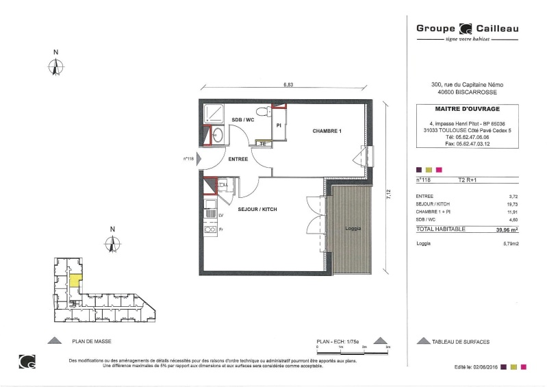 Appartement 2 pièces 39.96m²