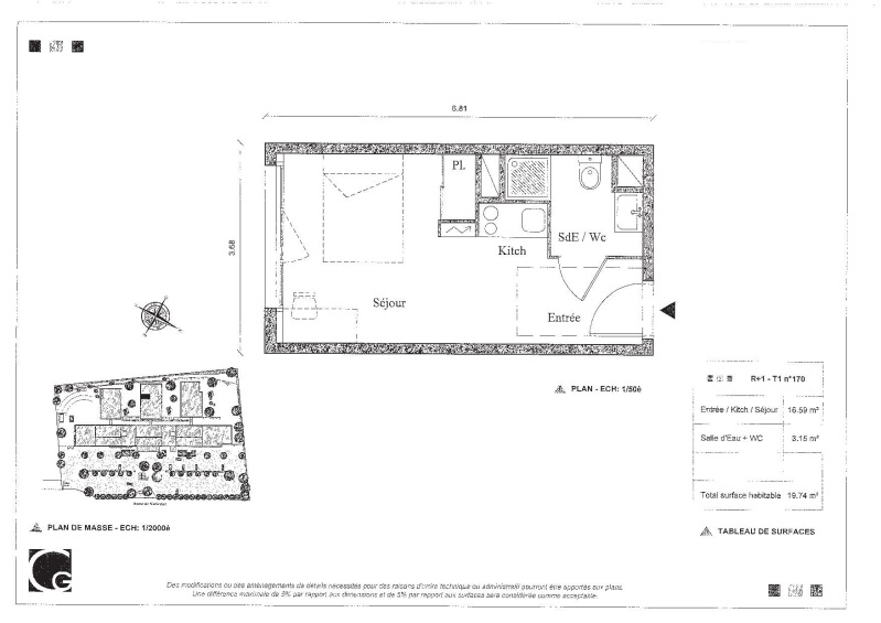 Appartement 1 pièce 19.74m²
