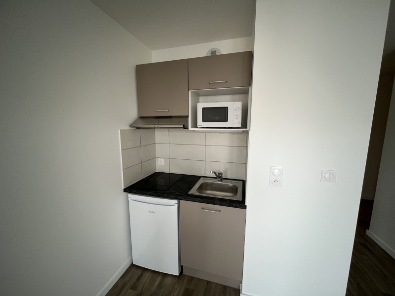 - Un coin cuisine équipée (plaque, hotte, meubles hauts et bas)