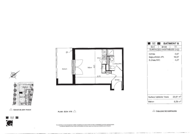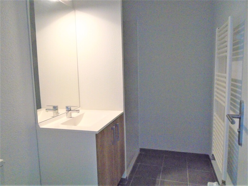 Il est composé d'une entrée d'une cuisine équipée (meubles hauts et bas, plaque vitrocéramique 2 feux, hotte aspirante, réfrigérateur table top) séjour s'ouvrant sur un balcon de 8m² et d'une salle d'eau avec WC.