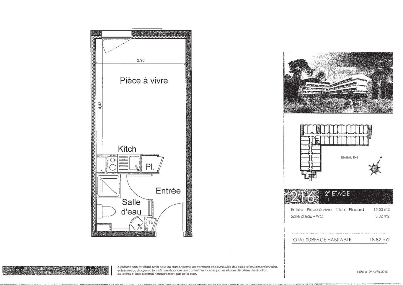 Votre studio, avec entrée, cuisine équipée (évier inox, plaque 2 feux, hotte, réfrigérateur table top, meubles hauts et bas), séjour, salle d'eau aménagée avec WC, placards aménagés.