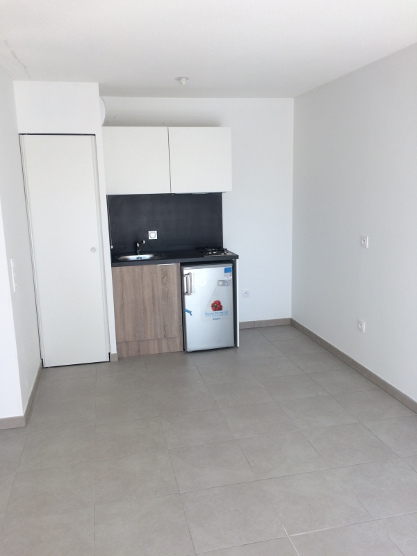Cet appartement T2 se compose d'une entrée avec placard, d'un séjour lumineux ouvrant sur un balcon de 5,04 m², et d'une cuisine équipée avec meubles hauts et bas, plaque deux feux, hotte aspirante et frigo top. La chambre dispose également d'un placard intégré. Vous trouverez une salle de bains aménagée avec WC pour un confort optimal.