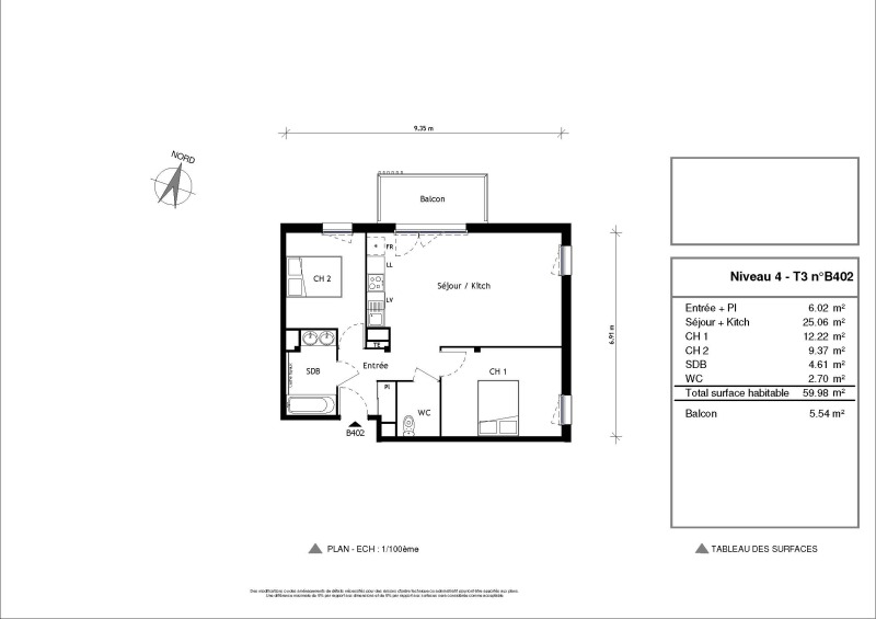 Appartement 3 pièces 59.98m²