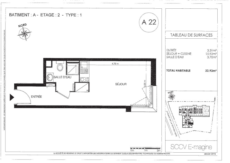 Votre studio, avec entrée, cuisine équipée (évier inox, plaque 2 feux, hotte, réfrigérateur table top, meubles hauts et bas), séjour, salle d'eau aménagée avec WC, placards aménagés, parking couvert et système de vidéophone.