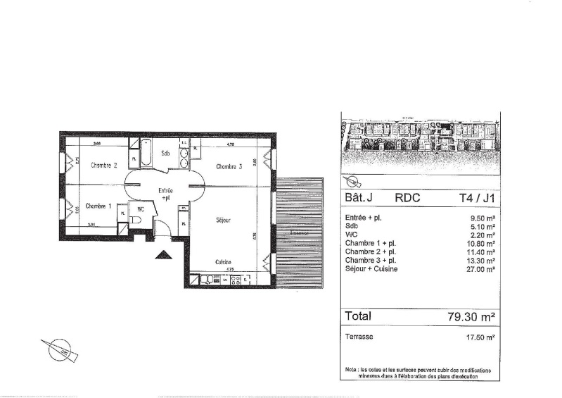 Elle vous propose ce T4 en rez-de-chaussée: entrée avec placard, salle de bains aménagée avec meuble double vasque et séche-serviette, wc, 3 chambres avec placards, séjour, cuisine équipée (évier, plaque 4 feux, meubles hauts et bas), grande terrasse de 17.50 m², et 2 parking sous-sol et ascenseur.