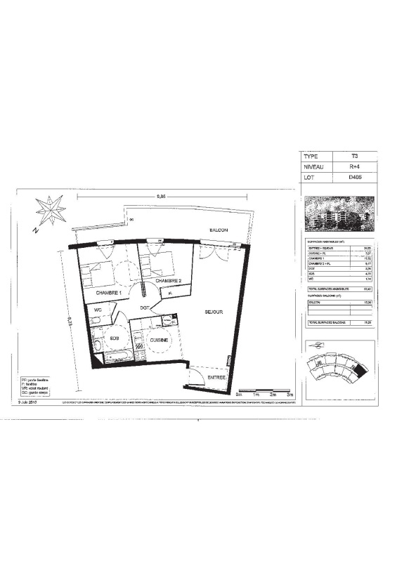 Nous vous proposons un appartement T3 lumineux, offrant de belles prestations et une architecture contemporaine inspirée du style basque. Il se compose d'une entrée, d'un séjour avec cuisine équipée (évier, meubles bas et placards), de deux chambres dont une avec placard, d'une salle de bains aménagée et de WC séparés. Vous apprécierez également son grand balcon, son parking couvert et la présence d'un ascenseur pour plus de confort.