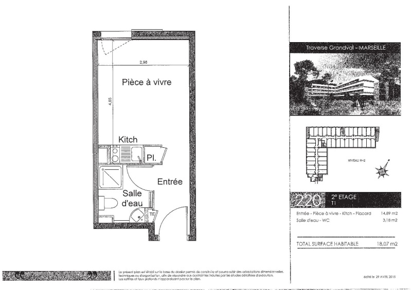 Votre studio, avec entrée, cuisine équipée (évier inox, plaque 2 feux, hotte, réfrigérateur table top, meubles hauts et bas), séjour, salle d'eau aménagée avec WC, placards aménagés. Système d'interphonie et ascenseur.