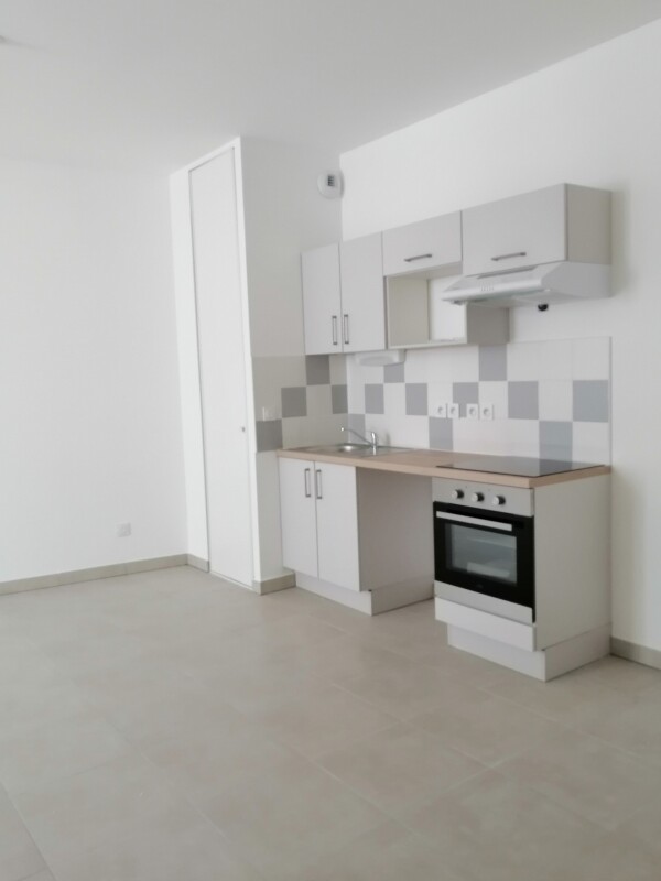 Nous vous proposons un agréable T3 composé d'une entrée, d'un séjour avec cuisine équipée (évier inox, plaque de cuisson, four encastré, hotte, meubles hauts et bas), de deux chambres avec placard, d'une salle d'eau aménagée avec WC. Il bénéficie d'un parking aérien.