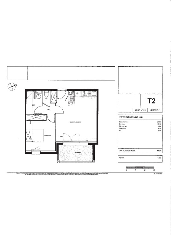 A 5 mn du centre ville, de Saint Vincent de Tyrosse et de la gare, au coeur d'un quartier résidentiel, agréable appartement T2 situé au 1er étage , composé d'une entrée, d'un séjour avec cuisine équipée (évier inox, plaque 2 feux, hotte, meubles hauts et bas, frigo top) s'ouvrant sur un balcon de 7m², d'une chambre avec placard, d'une salle d'eau aménagée avec WC séparé.