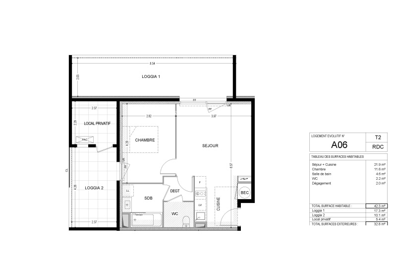 Appartement 2 pièces 42.3m²