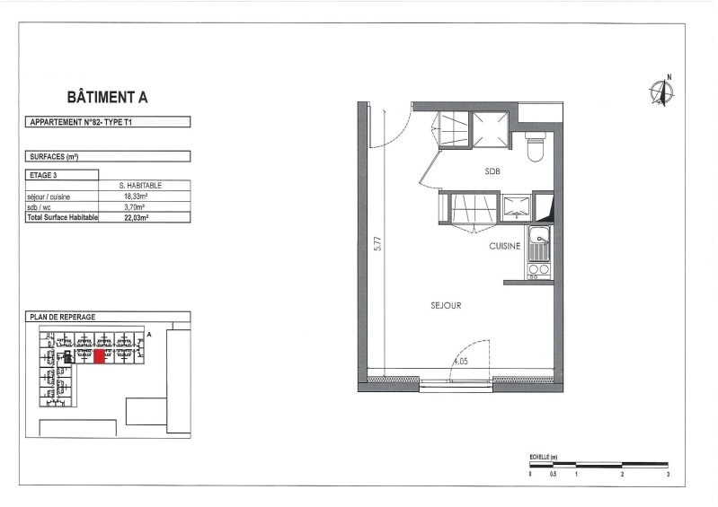 Appartement 1 pièce 22.03m²