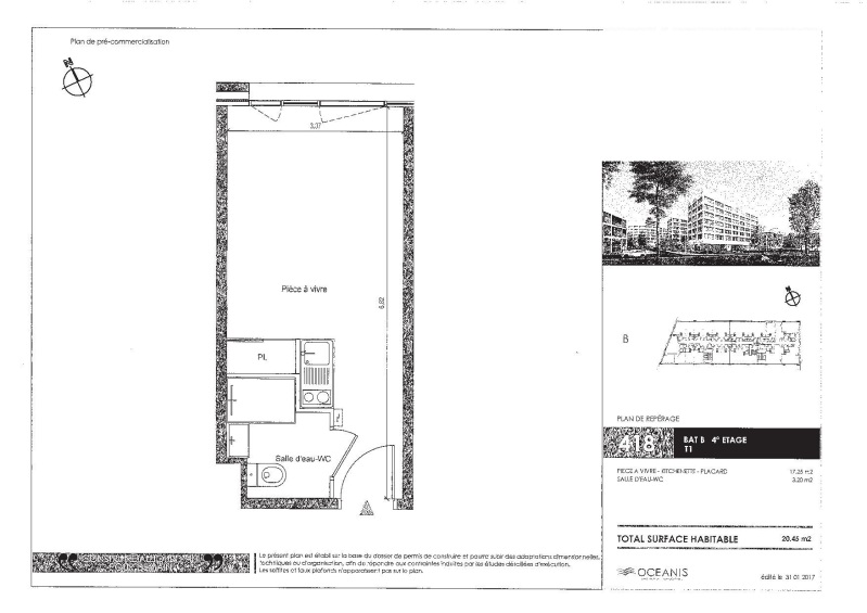 Nous vous proposons ce T1 composé d'un séjour avec cuisine équipée (évier inox, plaque 2 feux, hotte, meubles hauts et bas, frigo top, micro-ondes), salle d'eau aménagée avec WC.