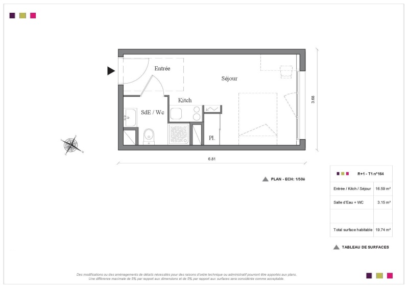Appartement 1 pièce 19.74m²