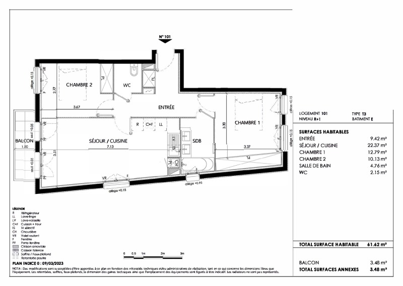 Appartement 3 pièces 61.62m²
