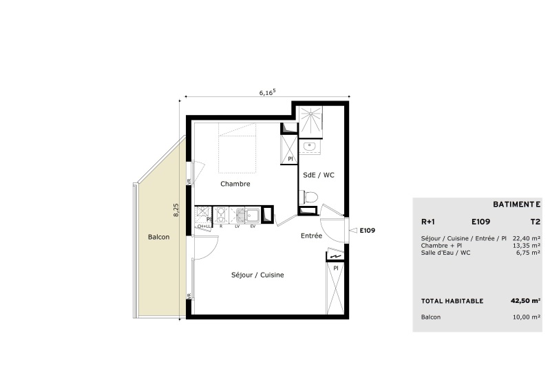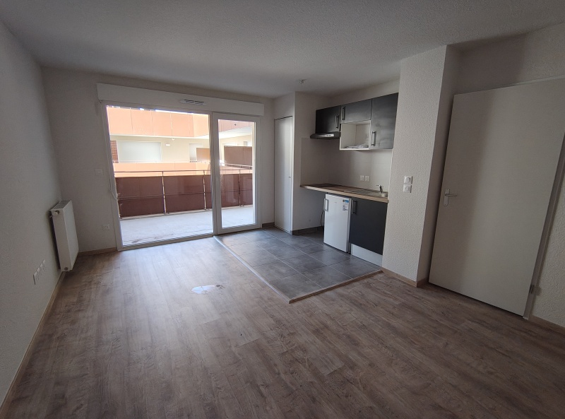 Il est composé d'une entrée avec placard, d'un séjour avec cuisine équipée (Meubles hauts et bas, un évier, plaque vitrocéramique 2 feux, une hotte, frigo top), d'une chambre avec placard, d'une salle d'eau aménagée avec WC , d'un balcon de 10.00 m². Il bénéficie de deux places de parking en sous-sol.