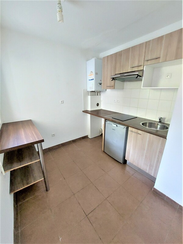 Elle propose un appartement T2 aux prestations de qualité : Entrée avec placard, cuisine équipée (évier, plaque 2 feux, meubles hauts et bas), une chambre avec placard, salle de bains aménagée, wc séparé, terrasse et parking aérien.