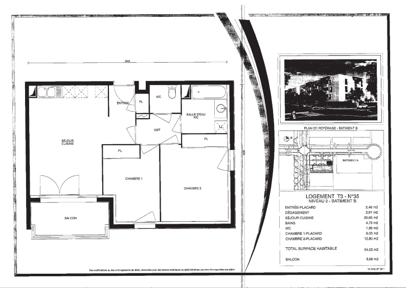 Appartement 3 pièces 54.52m²