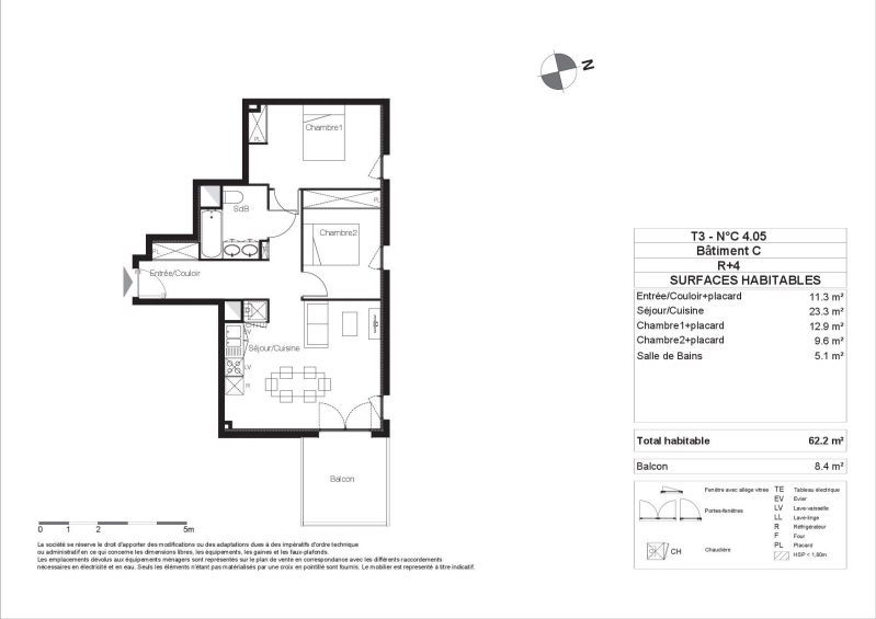 Appartement 3 pièces 62.6m²
