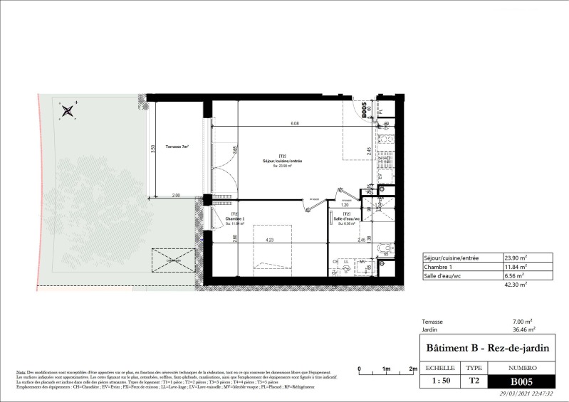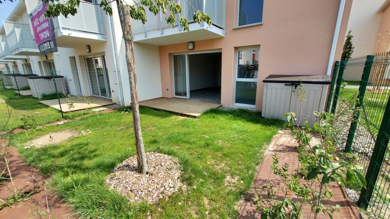 Nous vous proposons un agréable T2 composé d'un séjour avec cuisine équipée (évier inox, meubles haut et bas , hotte aspirante électrique, plaque vitro céramique 2 feux, réfrigérateur top), d'une chambre, d'une salle d'eau aménagée avec WC, d'une terrasse de 7.00m² et d'un jardin de 36.46m² .Il bénéficie d'un stationnement aérien et un sous sol.