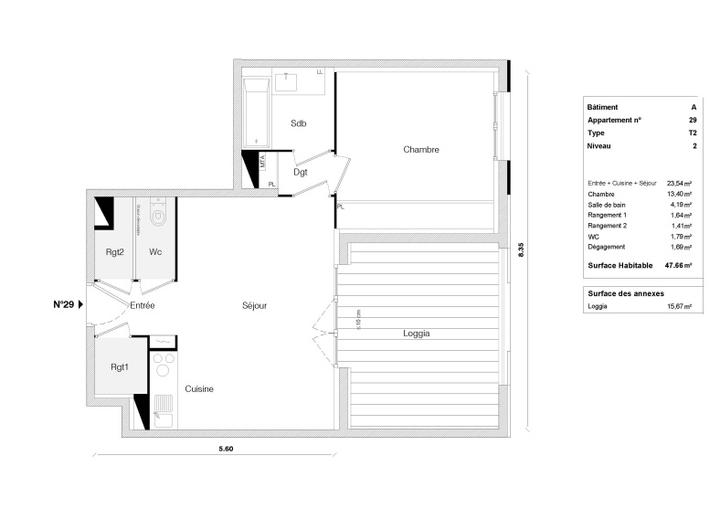 Appartement 2 pièces 47.66m²