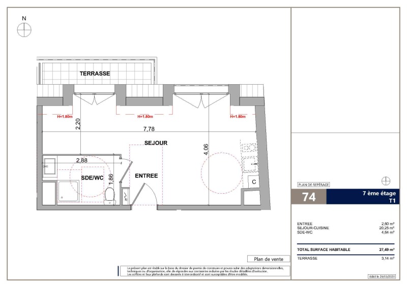 Appartement 1 pièce 27.49m²