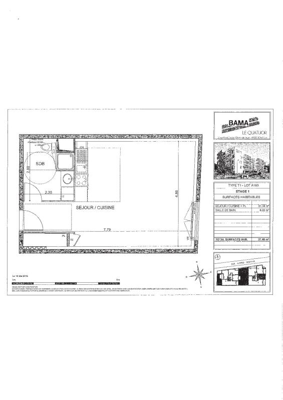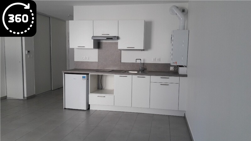 Appartement de type 1, composé d"une belle pièce à vivre lumineuse avec une cuisine équipée (frigo table top, plaque vitrocéramique 2 feux, hotte aspirante, meubles de rangement hauts et bas, emplacement pour machine à laves et four) et d'une grande salle d'eau avec WC.