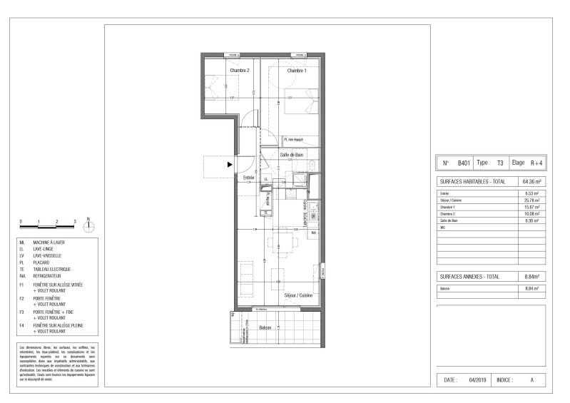 Appartement 3 pièces 64.36m²