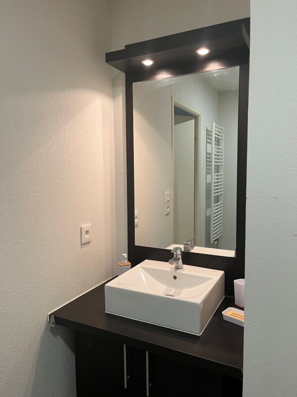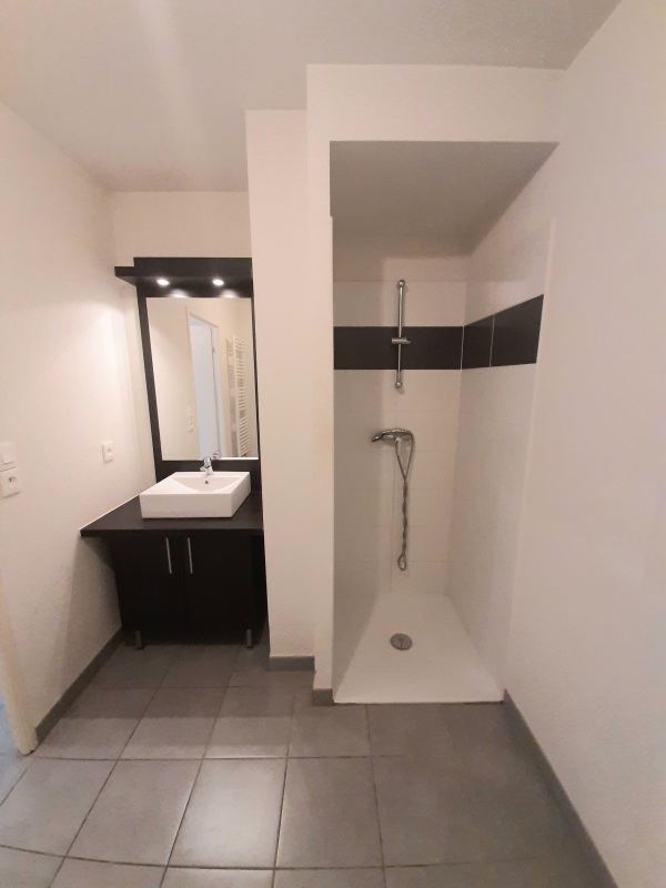 La salle dEUReau est équipée dEURune douche, dEURun lavabo et dEURun meuble sous-vasque.