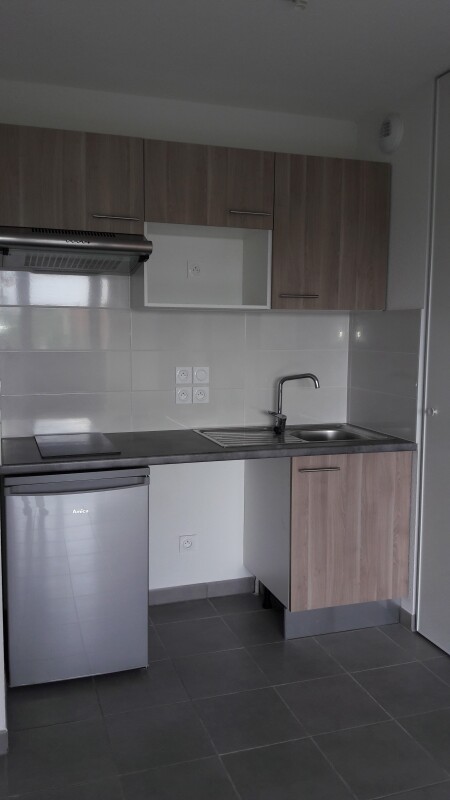 L'appartement est composé d'une entrée avec placard, séjour avec cuisine équipée (évier inox, plaque 2 feux, hotte, meubles hauts et bas, frigo top), une chambre avec placard, salle d'eau aménagée avec WC, un balcon de 7.75m². Un parking aérien.