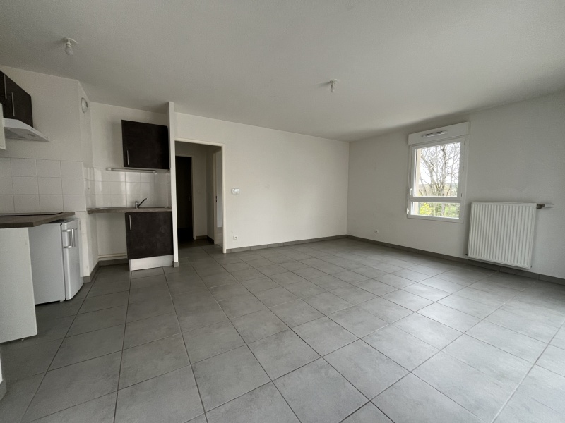Le séjour lumineux s'ouvre sur une cuisine équipée avec évier inox plaque deux feux hotte plan de travail et rangements hauts et bas idéale pour cuisiner au quotidien dans un espace fonctionnel et agréable