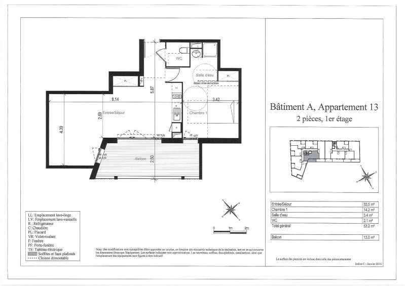 Appartement 2 pièces 53.2m²