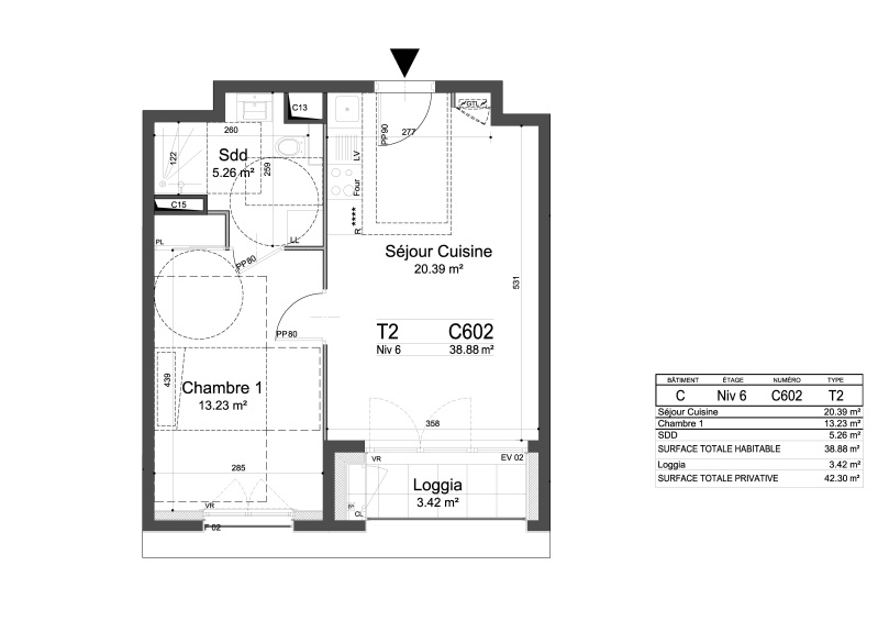 Appartement 2 pièces 38.88m²