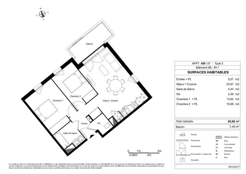 Appartement 3 pièces 60.98m²