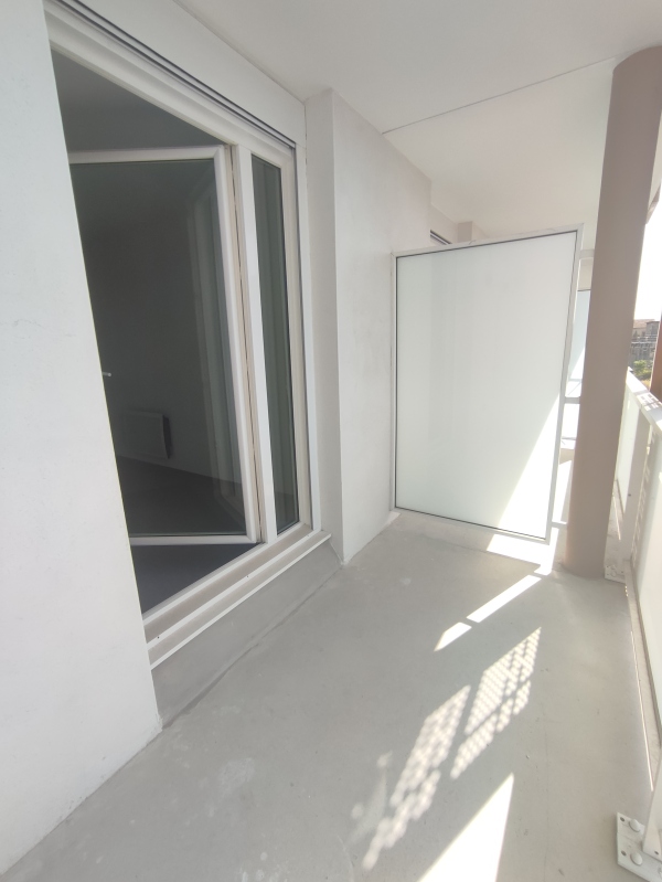 Il est composé d'une entrée, d'une pièce de vie avec cuisine équipée (évier inox, plaque 2 feux, hotte, meubles hauts et bas,frigo table top,), d'une salle d'eau aménagée avec WC, d'un balcon de 3.89m².